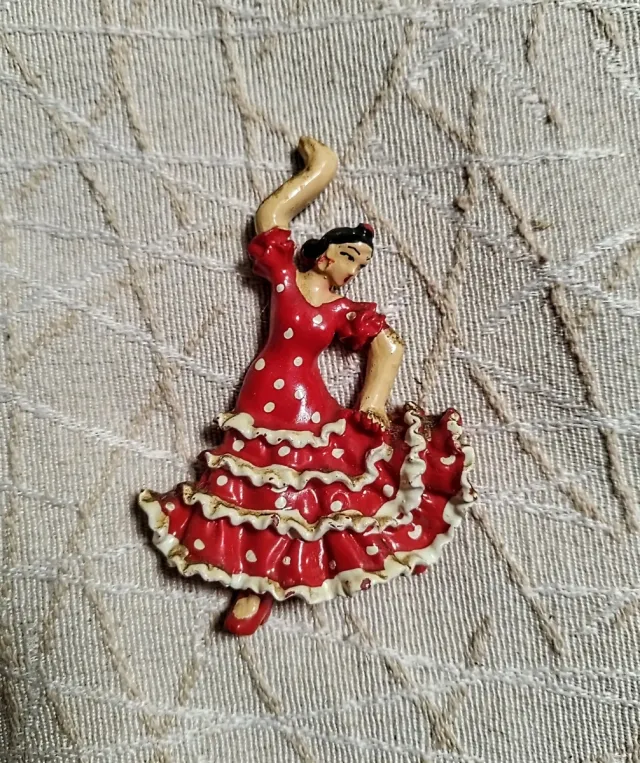 Detalles del productoEste imán representa una figura de bailarina flamenca con un vestido rojo de lunares blancos.