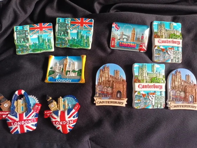 Detalles del productoLote de imanes conmemorativos de Londres y Canterbury.