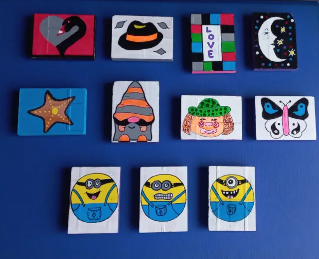 Conjunto de imanes decorativos ideales para la nevera, cada uno con un diseño único sobre azulejo.