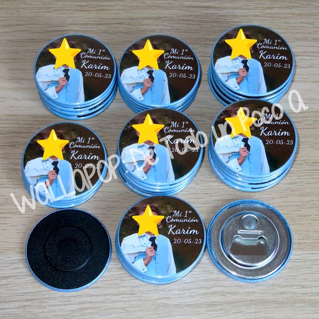 Detalles del producto🌟 ¡Haz que la Comunión de tu pequeño sea inolvidable! 🌟 Realizamos imanes y abrebotellas personalizados, ideales para regalar a tus invitados en este día tan especial. 🎉✨