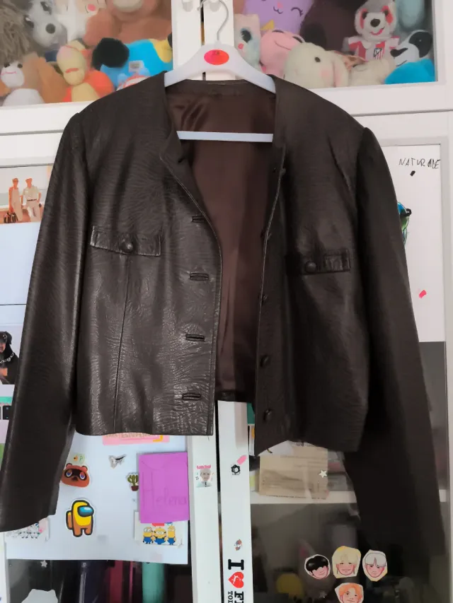 Impecable chaqueta corta marrón de piel.