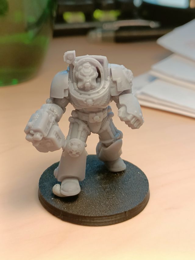 Se compone de 3 unidades en diferentes posturas, un capitan, y un terminator pesado con dos opciones de arma. Incluyen peanas.