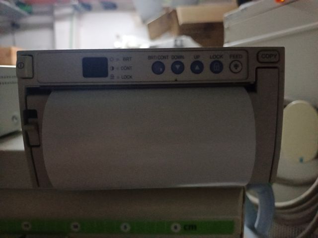 Impresora de vídeo para ecógrafo, en buen estado. - Dispone de botones para controlar la impresión. - Incluye rollo de papel. - Diseño compacto y ligero.