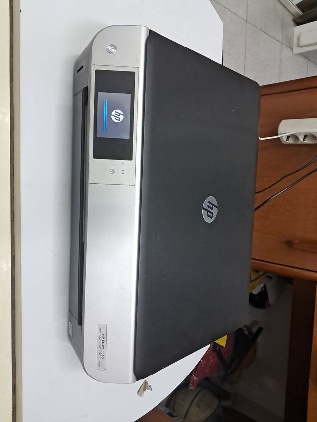 Impresora multifunción HP ENVY 5530 en color plateado y negro. Ideal para imprimir, escanear y copiar. - Funciones: Print, Scan, Copy, Photo, Web. - Modelo: HP ENVY 5530.