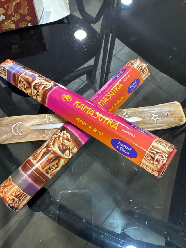 Pack de inciensos con aroma a Pachuli y Clavo. - Fragancia inspirada en el Kamasutra. - Incluye dos paquetes de incienso.