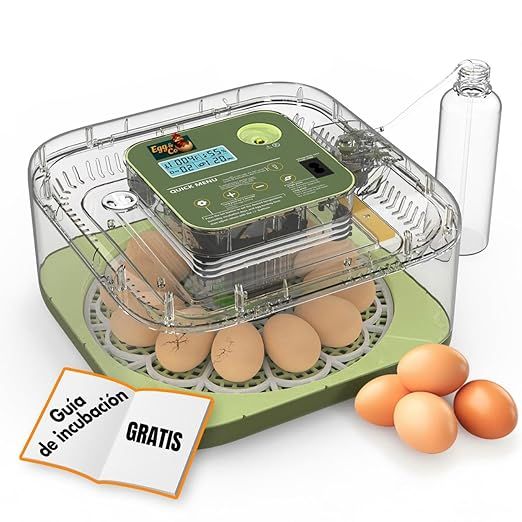 -NCUBACIÓN SENCILLA Y AL ALCANCE DE CUALQUIERA: ya seas principiante, aficionado a la cría de aves o tengas un pequeño proyecto de granja, esta incubadora automática facilita al máximo el proceso y ofrece una alta tasa de nacimientos. Es apta para huevos de gallina, pato, codorniz, oca, paloma, loro y más. Funciona con una toma de corriente común y no requiere experiencia previa para que los huevos tengan siempre las mejores condiciones.