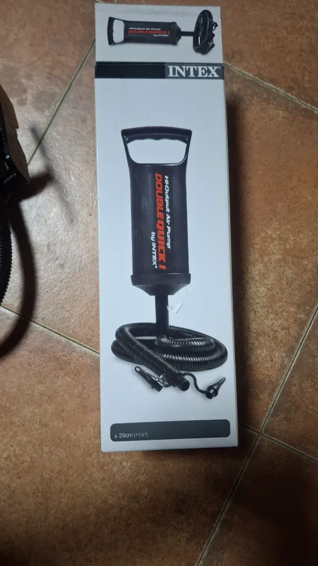 Inflador de aire de la marca Intex. - Modelo: Double Quick I - Longitud aproximada: 29 cm (11 1/4) ABIERTO SOLO PARA LA FOTO ESTA SIN USAR