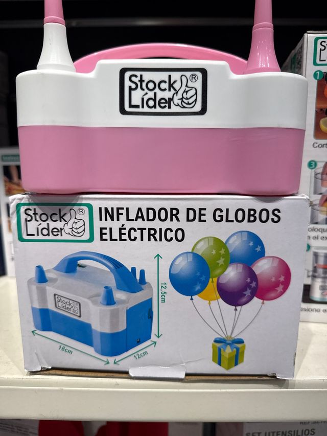 Detalles del productoInflador eléctrico para globos de la marca Stock Líder. Ideal para fiestas y eventos.