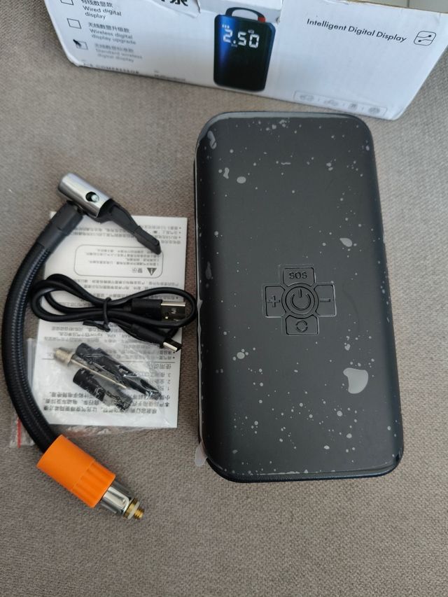 Inflador eléctrico para coche, en perfecto estado. - Portátil y fácil de usar. - Ideal para neumáticos de coche. Sirve como cargador para móviles,tables,etc.