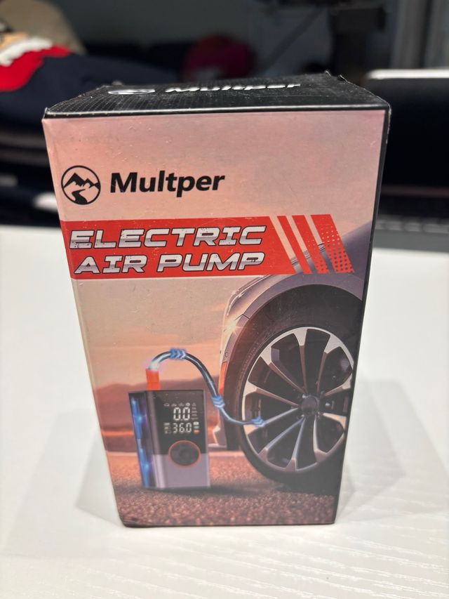 Inflador eléctrico portátil para diversas necesidades. - Diseño compacto y moderno. - Pantalla digital para fácil lectura. - Incluye manguera y adaptadores.