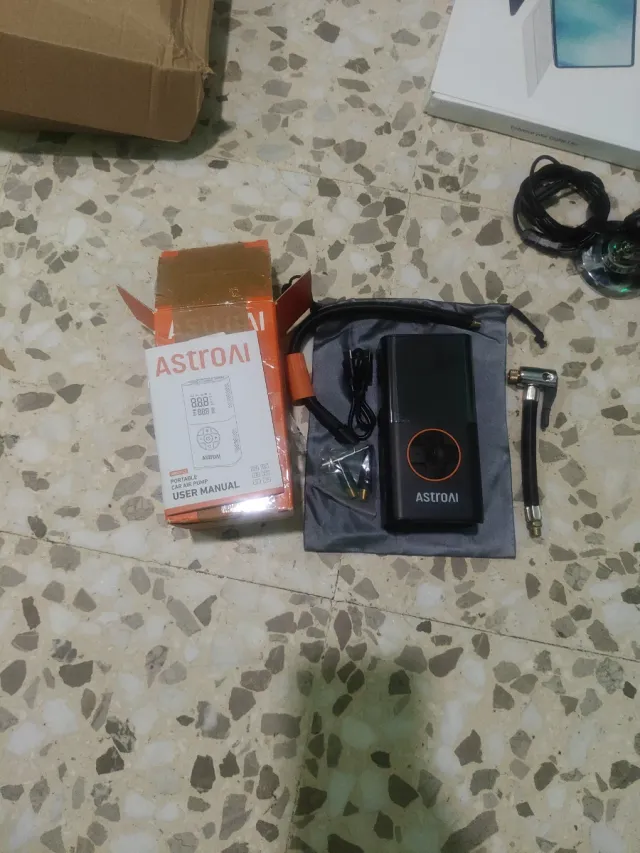 Inflador eléctrico portátil de la marca AstroAI, ideal para tener a mano. - Incluye manual de usuario. - Bolsa de transporte. - Manguera y adaptadores. Nuevo