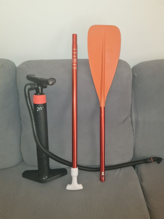 Se vende inflador Itiwit junto con un remo. - Inflador de pie. - Remo de color naranja.