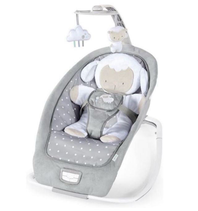 Detalles del productoIngenuity, Hamaca Mecedora para Bebés hasta 18 kg, Cuddle Lamo con vibraciones, arco de juego con 2 peluches, 12 melodías, 4 sonidos de naturaleza, volumen regulable, ergonómico.