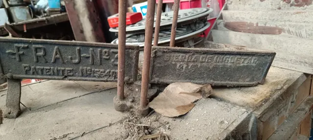 Detalles del productoIngletadora antigua original FRAJ modelo nº2, fabricada en hierro fundido macizo, robusta y muy estable. Herramienta profesional de época, ideal para colección, decoración industrial o uso en taller tradicional.