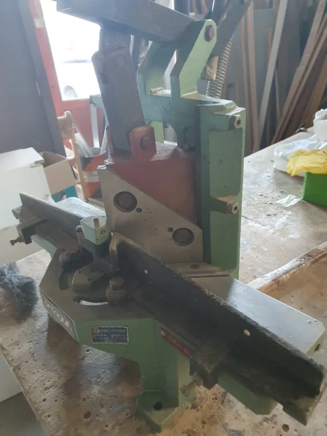 Ingletadora manual regulable de mesa, marca Proinga. - Modelo GRZ-50. - Construcción robusta para cortes precisos. - Base estable para trabajar en mesa.