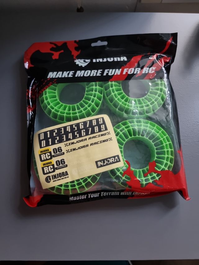 Detalles del productoJuego de 2 neumáticos INJORA para RC, color verde.