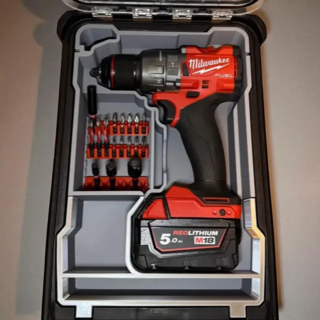 Compatibilidad: Diseñado a medida para el Taladro Milwaukee M18 FUEL (el de la foto) y el sistema modular Packout (Organizador Compacto).