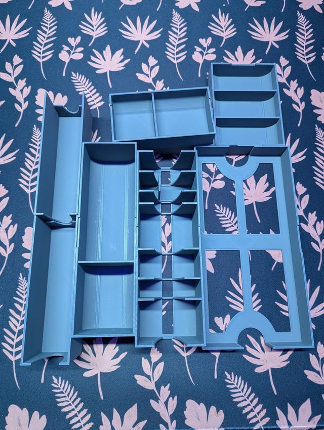 Detalles del productoInserto organizador para el juego de mesa Teotihuacan. IMPORTANTE: Fabricado en PLA de color GRIS. Se muestran otras dos fotografías en color amarillo para ver la disposición de componentes solamente.