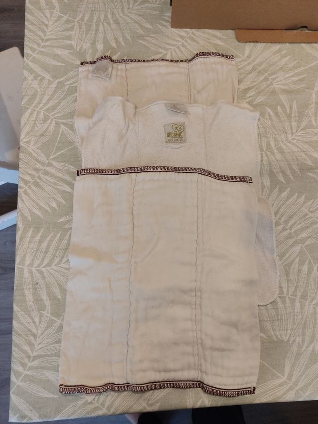 Insertos de algodón predoblados pequeños para pañales de tela. Son los 3 de algodón dos marca avocado y 1 blümchen.