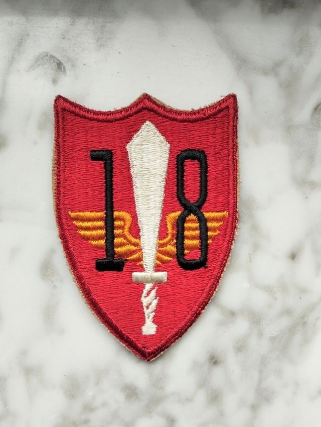 Insignia del 18th Defense battalion del Cuerpo de marines estadounidense. Estos batallones se ocupaban de las baterías de artillería antiaérea y antibuques. La 18th en concreto participó en batallas como la de Tinian o Saipán.
