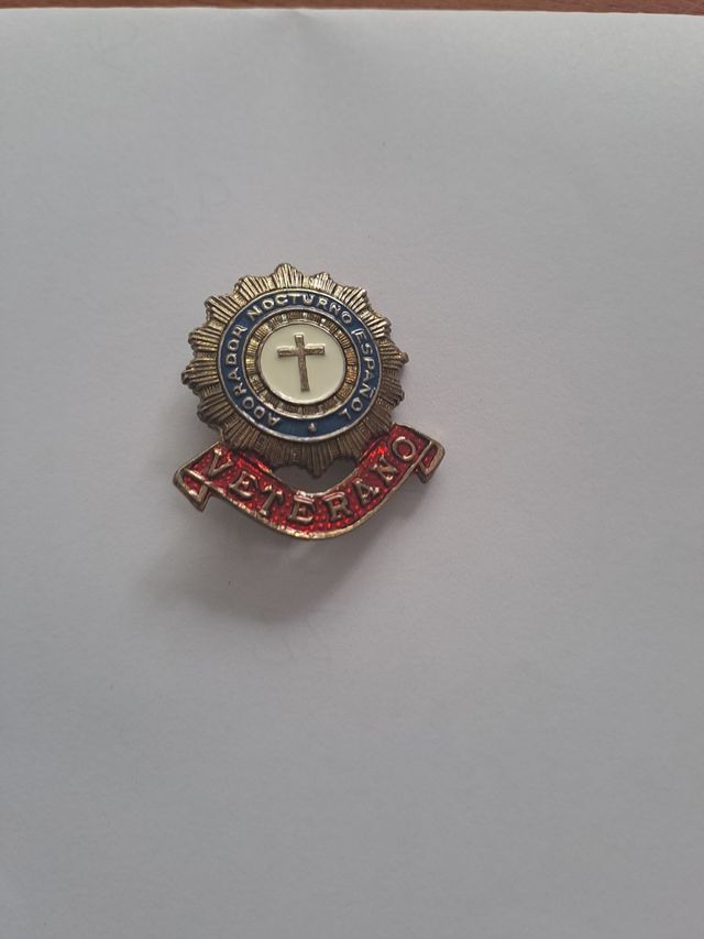 Detalles del productoAntigua insignia de la Adoración Nocturna Española. Es una pieza vintage.