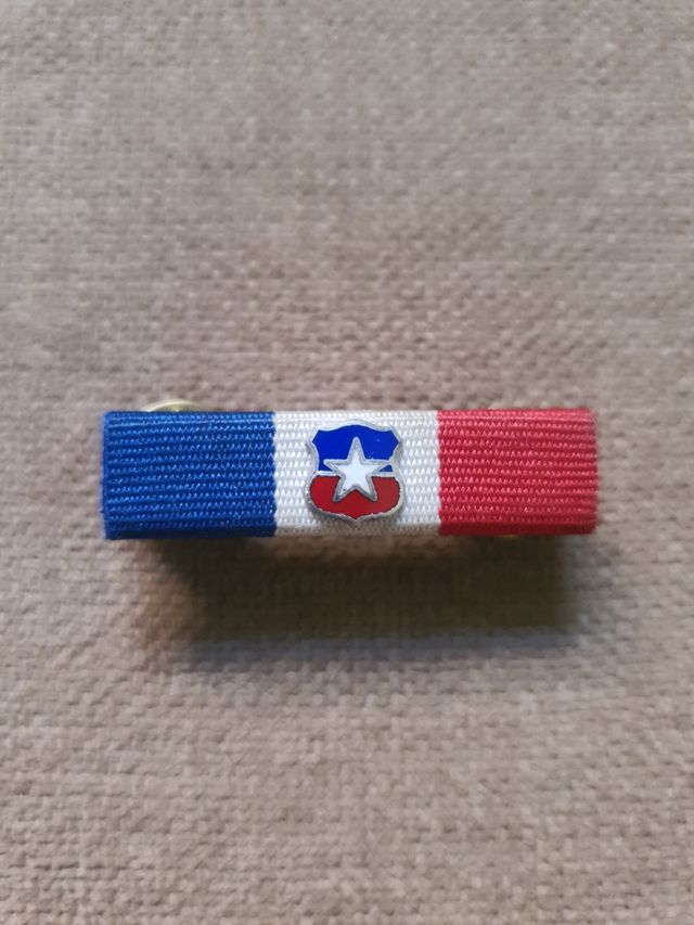 Detalles del productoSe ofrece una insignia de cinta de condecoración de la Armada de Chile. Es una pieza pequeña y vistosa.