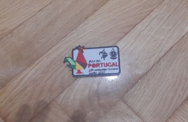 Detalles del productoInsignia del contingente portugués al 23º Jamboree Mundial, celebrado en Japon en 2015. Es una insignia bordada, que muestra un gallo de origami.