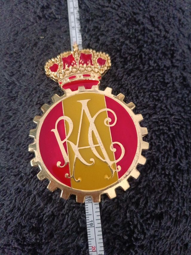 Insignia a estrenar del Real Automóvil Club. medidas 5,5 CMS diámetro y 8,5 de alto.