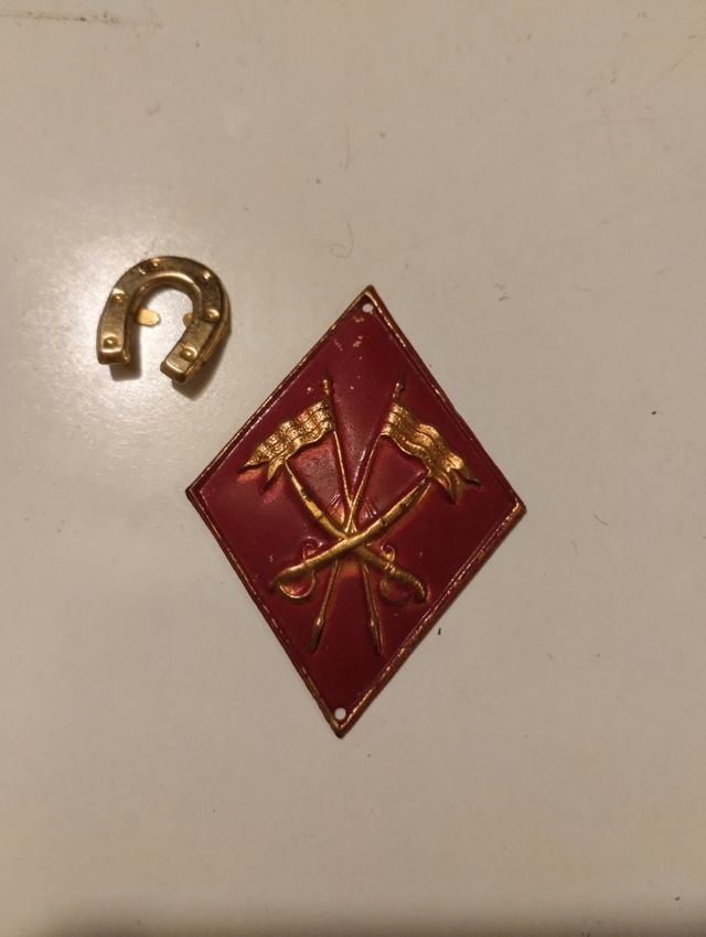 distintivo caballería. Un rombo metálico y una herrdura de 1'5cm. Como se ven en las fotos