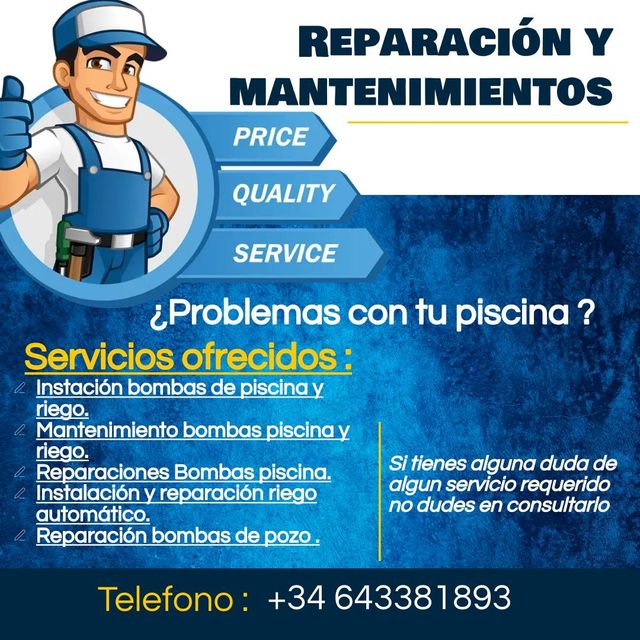 Detalles del productoReparación y instalación de bombas. para piscina,pozo y sondeo.
