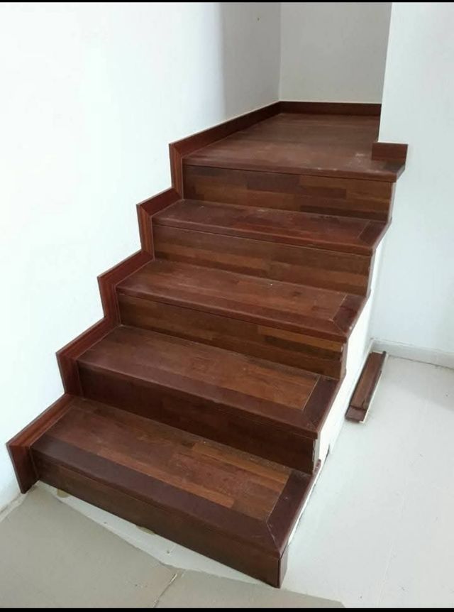 - Se incluye también la colocación de un suelo de parquet de madera, de aspecto moderno y limpio.