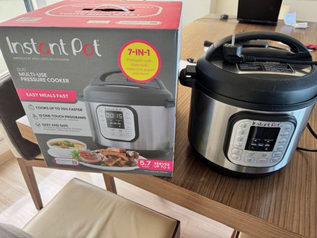 Detalles del productoOlla a presión multifunción Instant Pot Duo, ideal para preparar comidas rápidas y variadas. Funciona como olla a presión, slow cooker, arrocera, vaporera, salteadora, yogurtera, calentador y más.