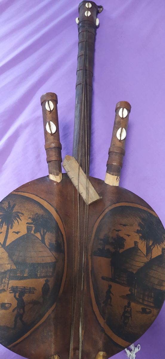 instrumento musical estilo africano. ideal para decoración y tb colgar en la pared. no hago envíos. guitarra, ukelele, África 85 cm de largo, unos 35 de ancho.