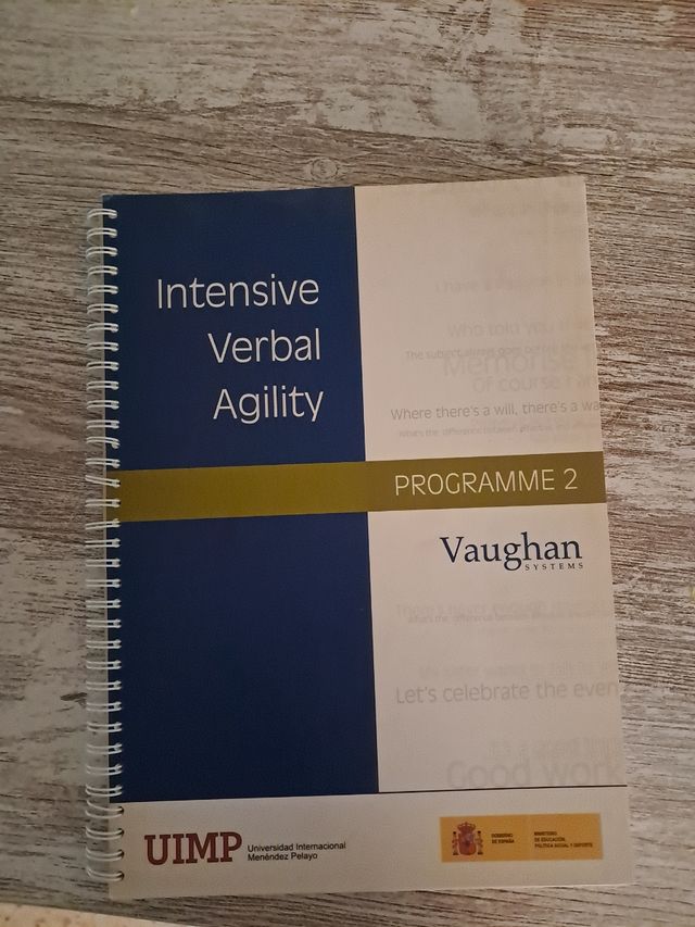 Detalles del productoCuaderno Intensive Verbal Agility, Programa 2 de Vaughan Systems. Edición de la Universidad International Menendez Pelayo. Sin usar