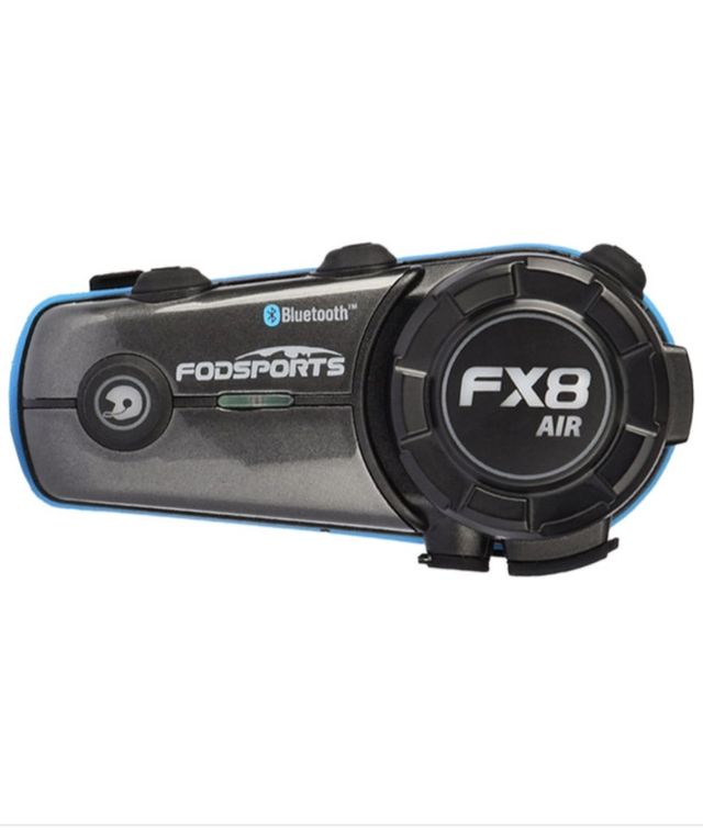 Intercomunicador para moto Fodsports FX8 Air. - Diseño en color gris y azul. - Conexión Bluetooth.