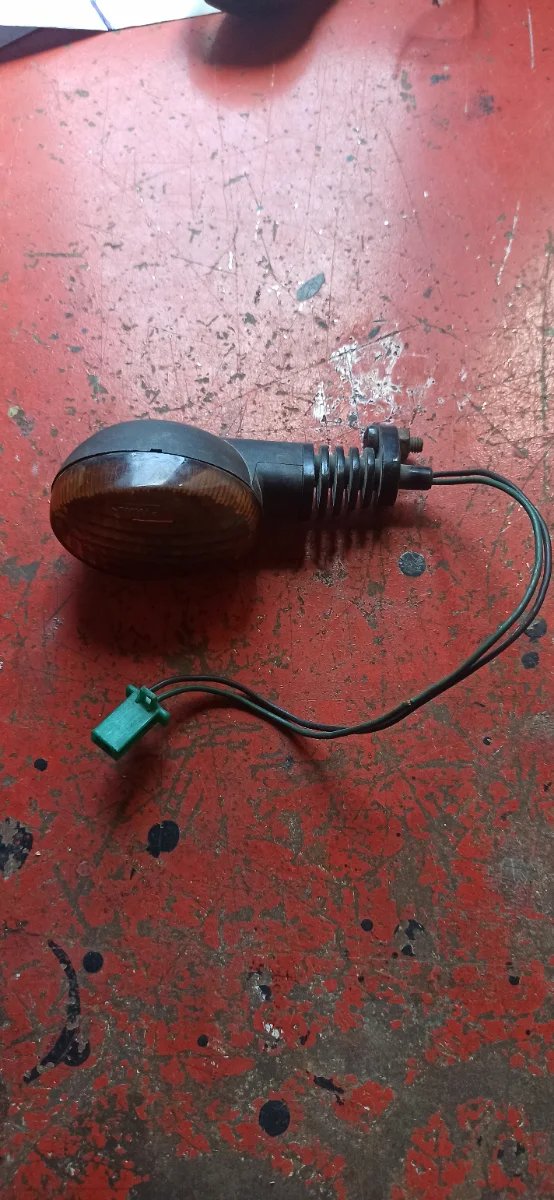 Intermitente de moto con carcasa de color naranja. Marca Rinder
