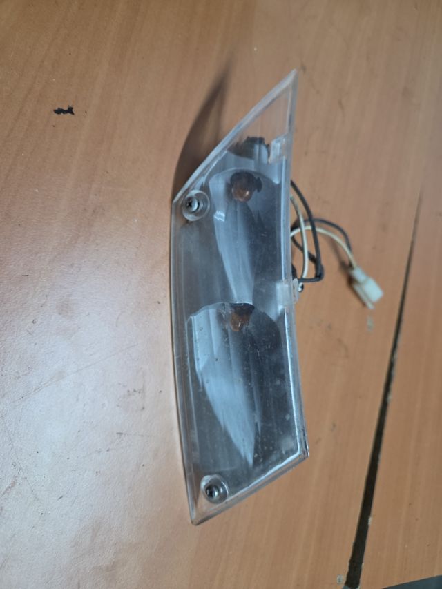Intermitente para Piaggio Zip. Pieza de plástico transparente con cableado. - Incluye dos bombillas. - Conector de dos pines.