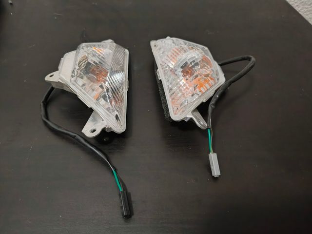 Pareja de intermitentes delanteros para Kawasaki Ninja. - Lente transparente. - Incluye cableado.
