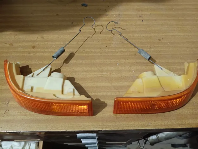 Cuatro intermitentes delanteros para Renault 5 GT Turbo. Piezas de recambio para tu coche.5€ sueltos,30€ los 4 - Color naranja. - Incluye muelle y soporte.