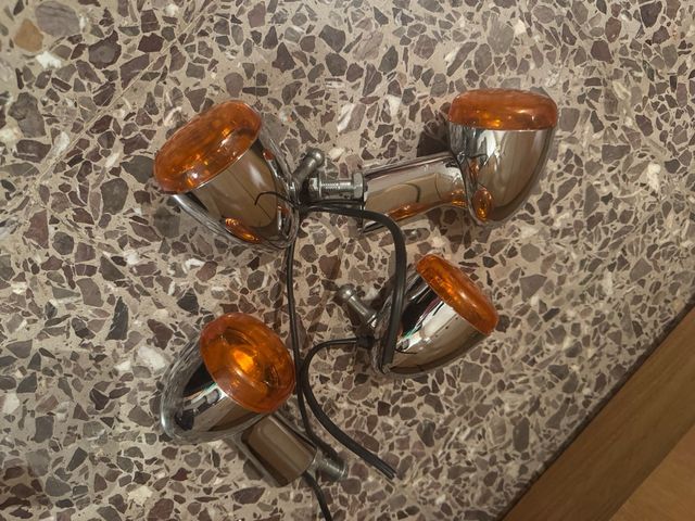 Juego de intermitentes originales para Harley Davidson. Piezas cromadas con lentes naranjas. - Cromado brillante. - Lente de color ámbar.