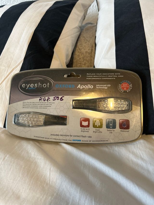 Detalles del productoIntermitentes LED de alta intensidad para moto de la marca Oxford.