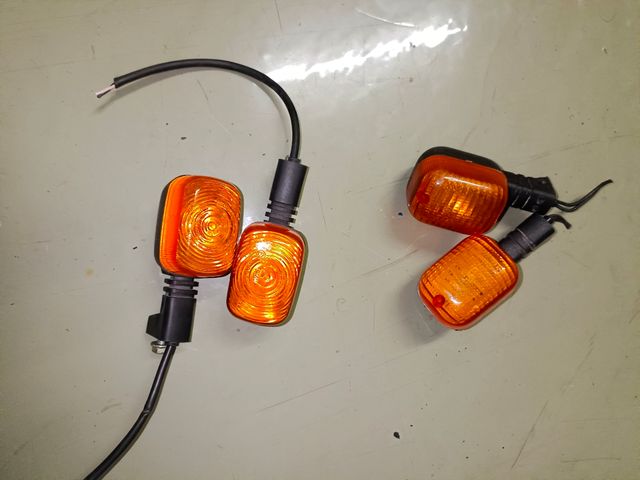 Detalles del productoConjunto de 4 intermitentes naranjas para quad. 2 nuevos sin usar y 2 usados (uno de ellos con la sujeción rota). Ideales para señalizar giros y mejorar la visibilidad.
