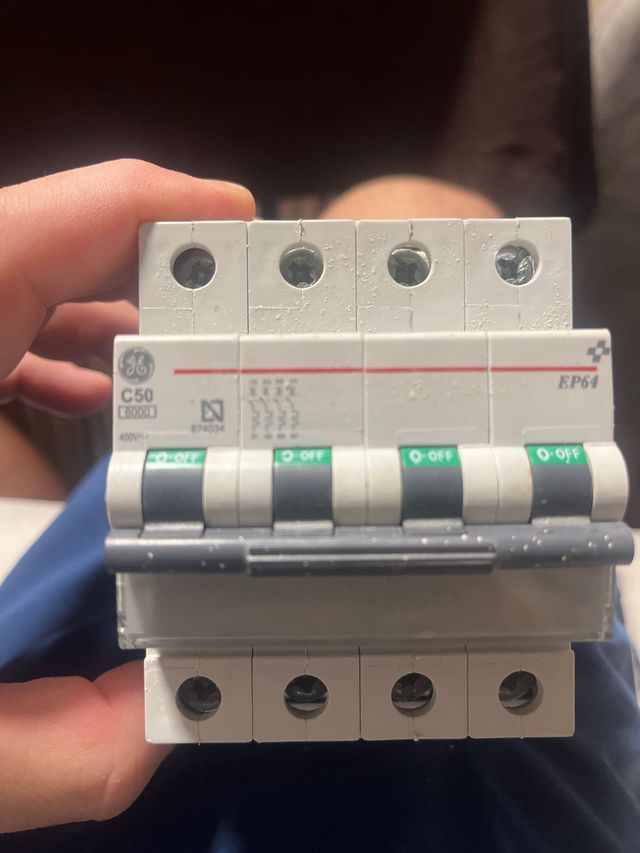 Interruptor automático GE C50 EP64 de 4 polos. - Modelo: C50 EP64 - Voltaje: 400V - Corriente: 50A - Número de polos: 4