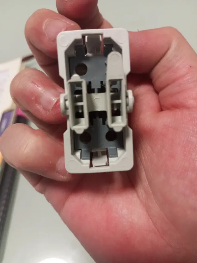 Interruptor BJC Rehabitat de color blanco y gris. Disponibles 2 unidades - Mecanismo de interruptor. - Diseño moderno y funcional.