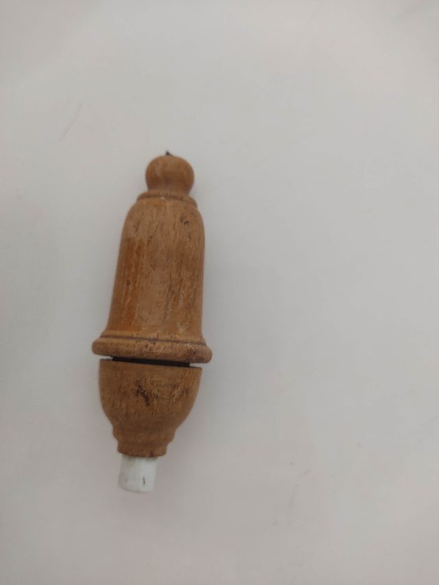 Detalles del productoPieza de madera antigua, posiblemente un interruptor o un elemento decorativo.