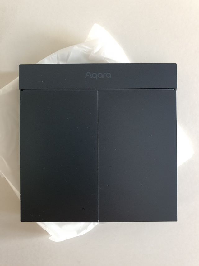 Interruptor de pared inhalambrico de la marca Aqara. Diseño moderno y elegante. Ideal para domotizar luces, persianas exteriores. - Color negro. - Acabado mate.