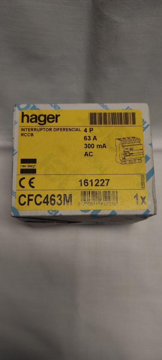 Interruptor diferencial 4 polos 63A 300mA, marca HAGER modelo CFC463M.