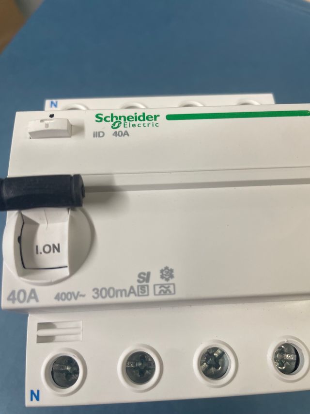 Detalles del productoSe vende interruptor diferencial trifásico Schneider Electric de 40A y 300mA súper inmunizado.Está en buen estado.