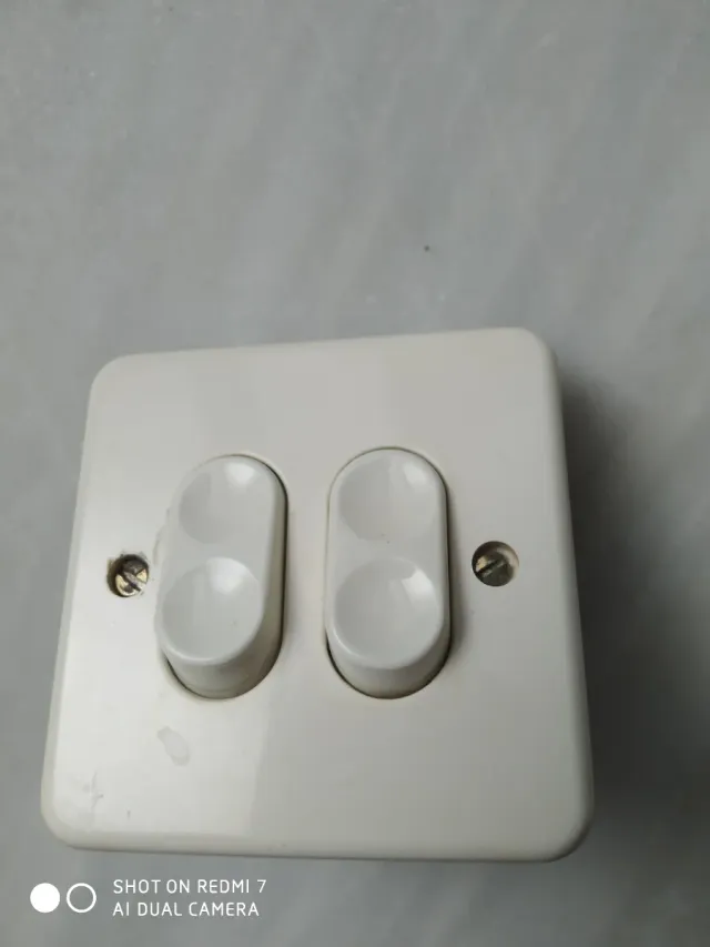 Interruptor de luz doble en color blanco. - Diseño moderno y funcional. - Dos botones independientes.