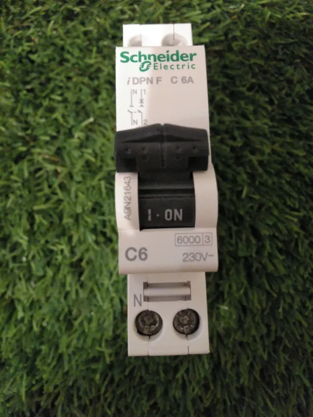 Interruptor automático DPN de Schneider Electric. - Modelo: iDPN F C 6A - Tensión nominal: 230V~ - Corriente nominal: 6A - Curva C - Poder de corte: 6000